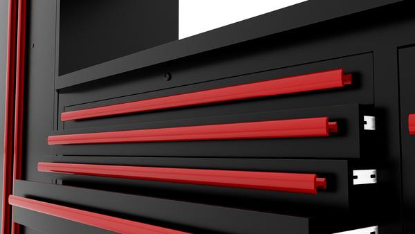 Ces armoires résistantes sont fabriquées en acier massif de calibre 18 et 22 et sont revêtues d’un fini durable en poudre satinée de couleur noir. En gage de qualité, nous avons inclus des portes et des tiroirs à double paroi. Nos charnières à fermeture souple sans dégagement sont très pratiques pour éviter les claquements de portes indésirables. Aucun assemblage n'est requis.